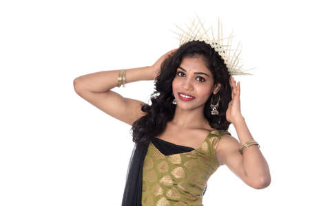 Beautiful young girl posing on white background