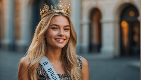 Young beautiful girl with crown and ribbon