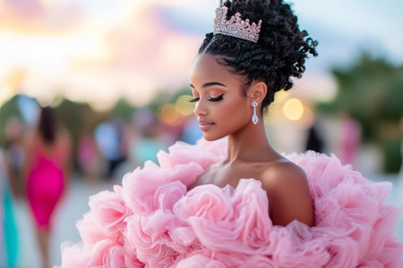 Young beautiful girl with crown and ribbon