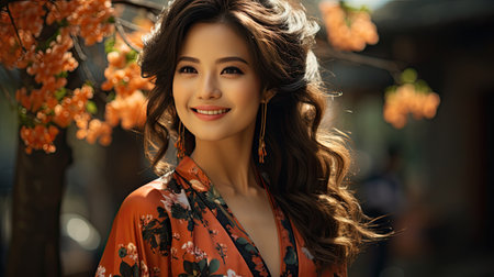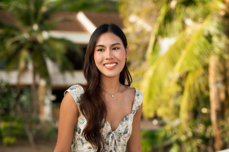 Young Asian woman smiling face outdoors during summer