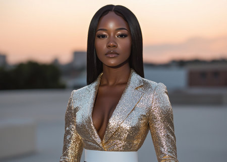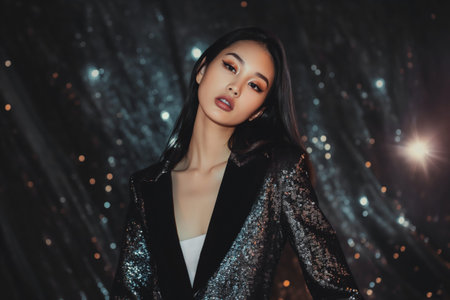 beautiful woman in a fashionable shiny dress, luxury
