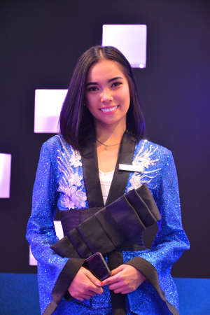 PASAY, PH - MARCH 24 - Yamaha female model at Inside Racing Motor Bike Show on March 24, 2019 in Pasay, Philippines.