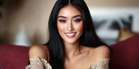 Natural portrait,Beautiful Asian girl smiling. Native Asian beauty. Asian woman