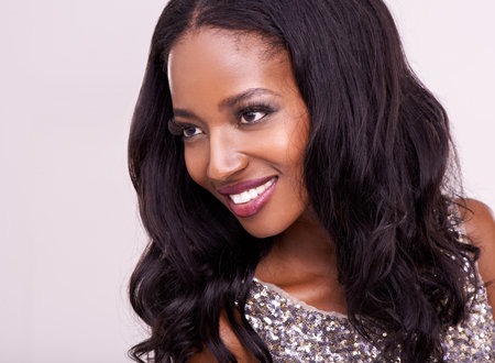 Close up portrait of a beautiful young african american woman smiling