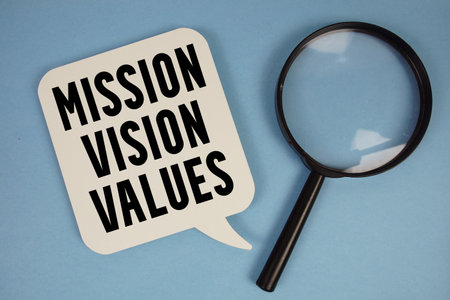 Mission Vision and Mission print screen on wooden block for company business statement concept.