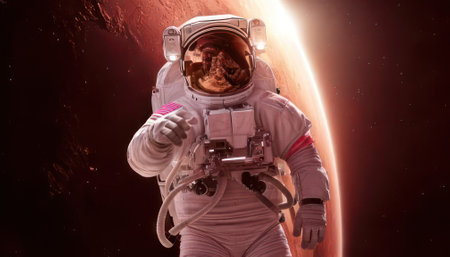 astronaut in the orbit of Mars, against the background of Mars, dynamic pose, Generative AI