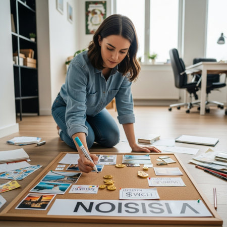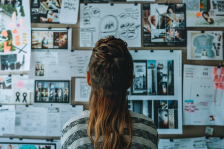 A Creative brainstorming session with content creator analyzing ideas on whiteboard
