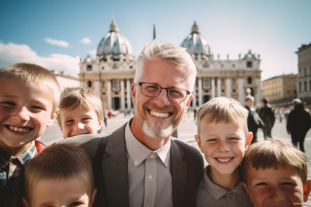 Portrait of a smiling senior man with his children in front of St. Peter's Basilica