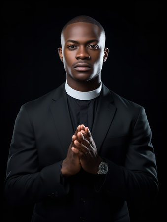 Portrait of a Young Black Priest Holding the Holy Bible in His Hand and Looking at the Camera. A Servant of God Helping Lost Souls Find the Path of Righteousness through Faith,