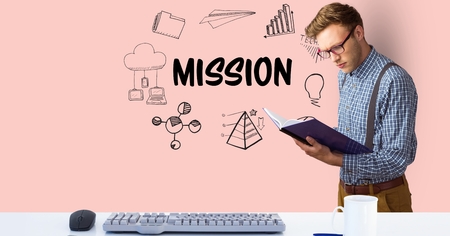 Words of goals, vision and mission on book, business concept and success idea