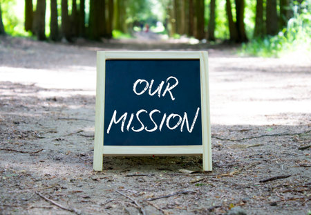 Our Mission symbol. Concept word Our Mission on chalk blackboard. Beautiful forest background. Business and Our Mission concept. Copy space.