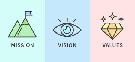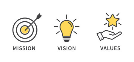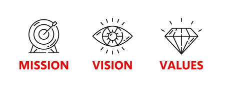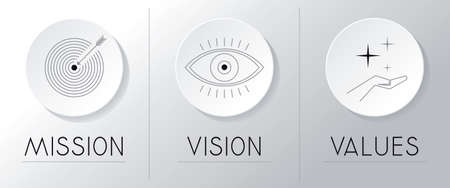 Mission, vision, values concept - three icons - vector illustration