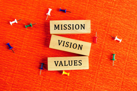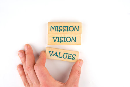 Vision Mission Values, quote text written on wooden block, business motivation inspiration concept