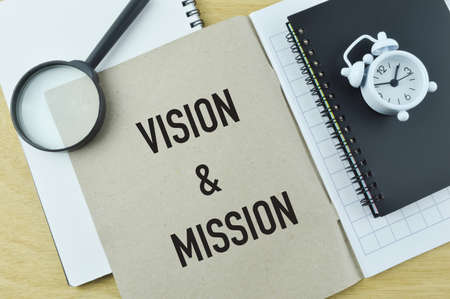 Top view of notebook written with VISION and MISSION