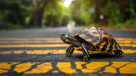 Turtle on the road in the park,selective focus.