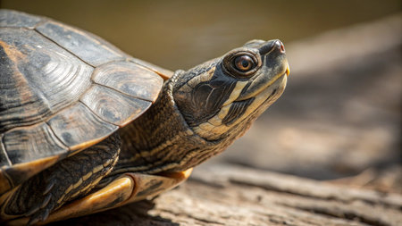 Painted turtle on a log in natural habitat, focused animal wildlife concept