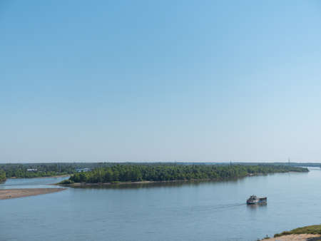 sandy Bank on the Ob river, Altai Krai, Russia. Landscape on a Sunny summer day