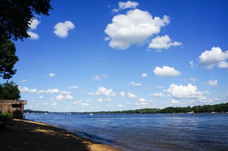 Panoramic view of the river and the blue sky with clouds