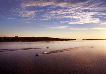 on the river in the evening before sunset