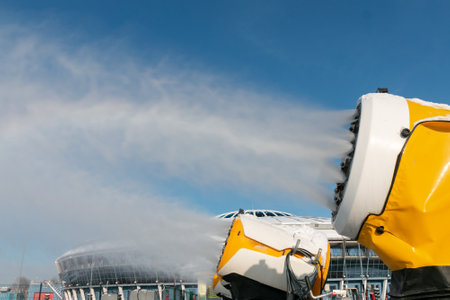 artificial snow cannon in operation