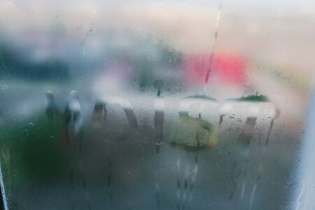 Drops of rain on the window, blurred background, rainy weather