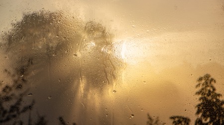 Condensation on the window. Rain drops on the window. Rainy weather.