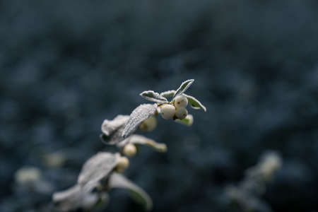 Symphoricarpos albus. Common snowberry and leaves. Frosty green autumn leaves. Natural environment background