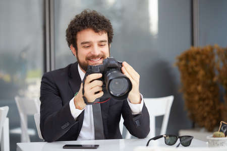 male photographer with camera office object lifestyle