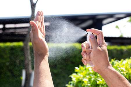 hand using alcohol spray for protect from infection of virus and germ Covid-19 coronavirus