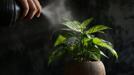 hands are spraying home plant