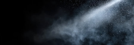Close-up of a water spray bottle releasing a burst of mist, illuminated by dramatic lighting on a dark backdrop