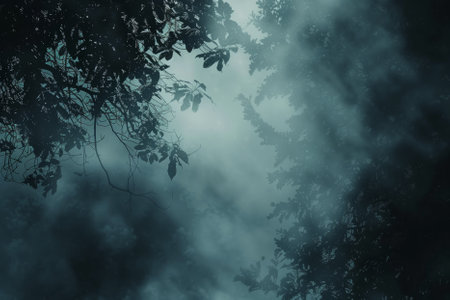 AI Generated. Mystical Blue Fog Blanketing Ground in Dramatic Abstract Contrast