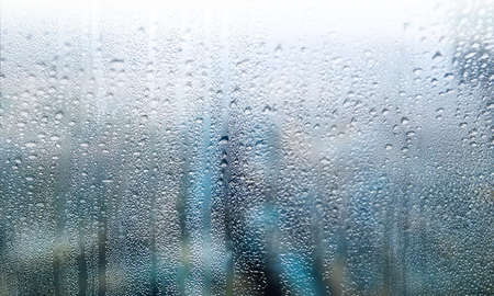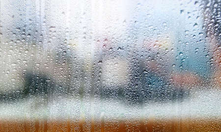 Condensation on the window. Raindrops on the glass. Blurred background.