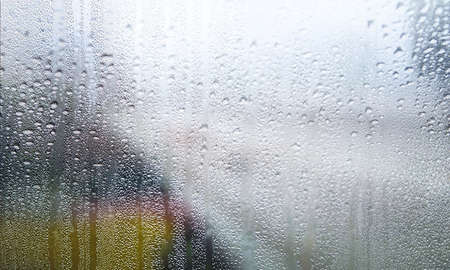 Condensation on the window. Raindrops on the glass. Rainy weather.