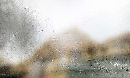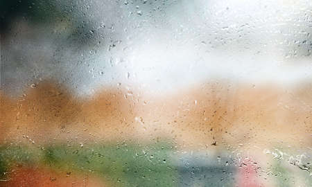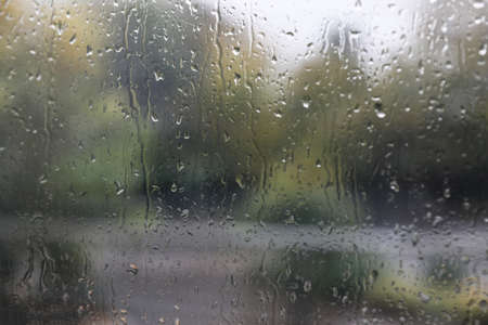 Rain drops on window glass. Rainy weather background. Raindrops on window glass.