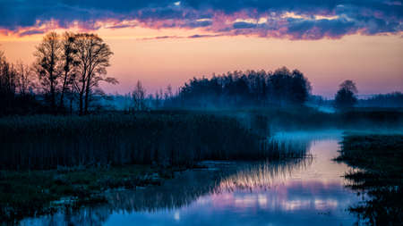 Sunrise over the wetlands. The Lasica Canal, Kampinos National Park, Poland.