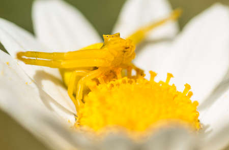 Close up of a spider of a crab on a camomile (Misumena vatia)