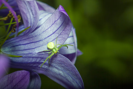 This captivating close-up image features a colorful spider perched on a flower petal, showcasing intricate details and vibrant colors in a natural setting.