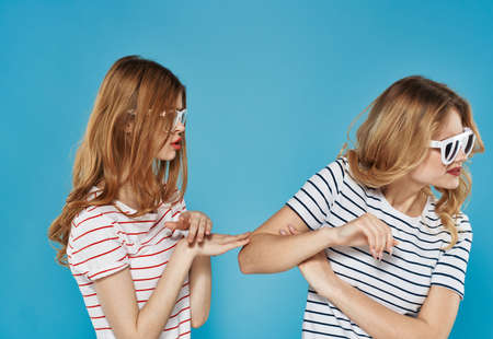 beautiful and young girls having fun and walking around the city happy and smiling on a sunny day