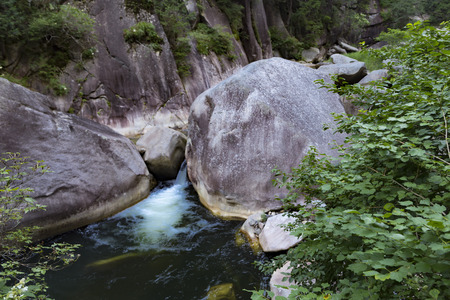 Sogeumgang creek and reflections of the trees and mountains on the water. Taken in Odaesan National Park in Gangneung, South Korea