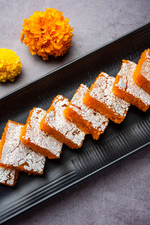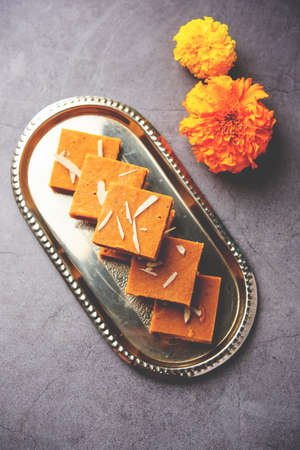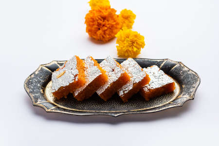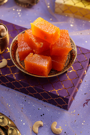 Indian-Kerala sweet dish-Halwa or Halva ,arranged in a festive background.