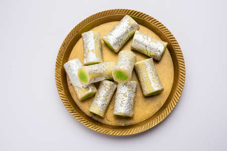 Pista Roll Or Pistachio Rolls Mithai or sigar, Indian sweet or dessert for festivals
