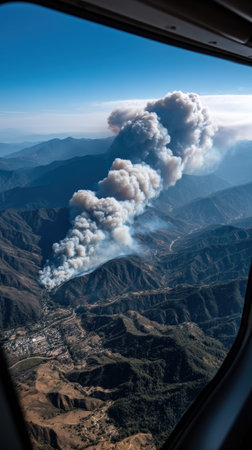 An Aerial view of smoke spreading across wide region, dramatic landscape