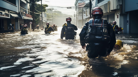 Heroic rescue team saves lives in post-cyclone flood., generative AI