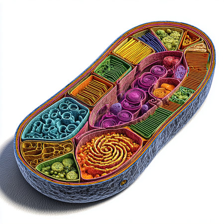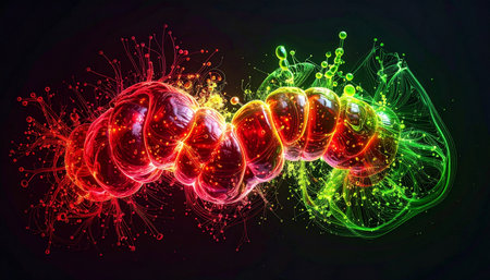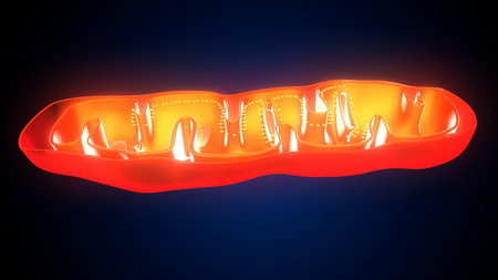 A vibrant 3D illustration of mitochondria, highlighting their detailed internal structures.