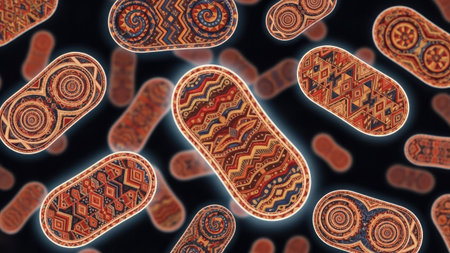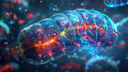 An intricate digital representation of bacteria displaying vibrant colors and glowing elements, highlighting the fascinating world of microscopic life in a stunning abstract setting.