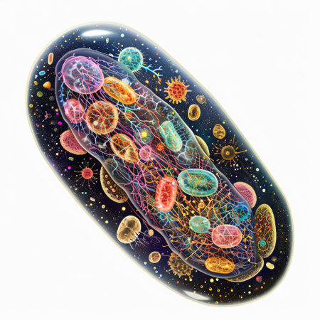 Intestinal ecosystem concept highlighting gut bacteria diversity.