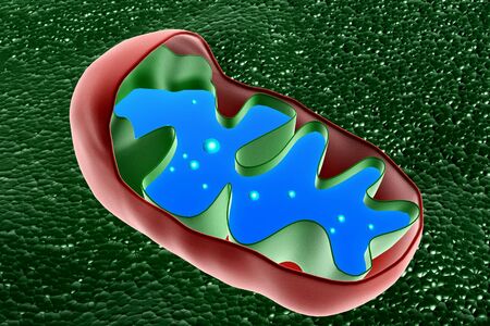 Cross-section view of Mitochondria, 3d rendering. Computer digital drawing.
