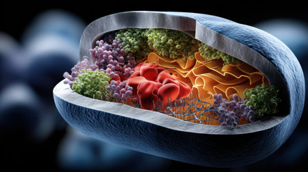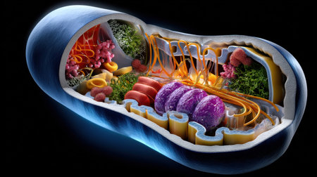 Photorealistic illustration of mitochondria in a cell. AI Generated
