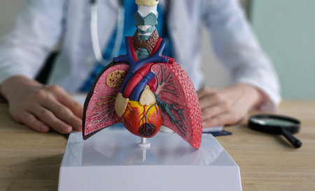 Detailed anatomical model of human lungs and heart displayed during medical education session in clinic setting